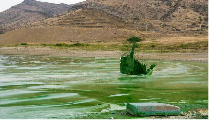 Şəkildən göründüyü kimi Xudafərin su bəndinin gölməçəsində işğalçı Ermənistanın zavod və Atom Elektrik Stansiyasının kanalizasıya tullantıları ərazinin və suyun rəngini də dəyişmişdir. Yaşıl zəhərli maddələr həm suyun, həm ərazinin rəngini dəyişmişdir.
