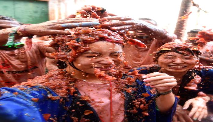 Metbuat.az “Haberler.com”a istinadən xəbər verir ki, İspaniya gənclərinin əylənmək üçün oğurladıqları pomidorları bir-birinə atdığı bu ənənə 1945-ci ildən davam edir. Pomidor savaşı qəsəbənin bütün küçələri pomidor suyu ilə əhatə olunana qədər davam edir.