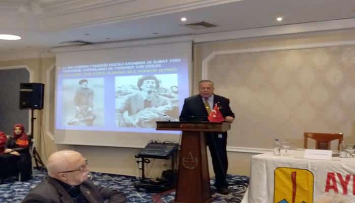 “Qarabağ və Xocalı soyqırımı” mövzusunda çıxış edən professor İbrahim Öztek deyib: “Faciənin törədilməsindən xeyli əvvəl artıq Xocalıda humanitar vəziyyət gərginləşmişdi. Ciddi ərzaq və dava-dərman çatışmazlığı yaranmasına baxmayaraq, Xocalı sakinləri şəhəri əldən vermək fikrində deyildilər. Avtomat və ov tüfəngləri ilə silahlanmış yerli sakinlər, milis qüvvələri şəhəri erməni quldurlarından qorumağa çalışırdılar. 1992-ci il fevralın 25-dən 26-na keçən gecə ermənilər müxtəlif döyüş silahlarının və canlı qüvvələrin köməyi ilə qəflətən şəhərə güclü hücum edib və Xocalı top atəşinə tutulub. Xocalılılar təpədən dırnağadək silahlanmış orduya qarşı tab gətirə bilməyiblər. Şəhərin yaşayış evləri dağıdılaraq yandırılıb və təqribən 2500 nəfər köməksiz Xocalı sakini şəhəri tərk edib. Lakin onlar azərbaycanlı-turk qanına susamış silahlı erməni quldurları ilə üz-üzə gəliblər. Nəticədə 63-ü uşaq, 106-sı qadın, 70-i qoca olmaqla 613 nəfər erməni vandalları tərəfindən misli görünməmiş amansızlıqla qətlə yetirilib. Bir gecənin içində səkkiz ailə tamamilə məhv edilib, 25 uşaq hər iki valideynini, 130 uşaq isə valideynlərindən birini itirib. Yaralanan 487 nəfərdən 76-sı uşaq olub. O gecə 1275 sakin əsir götürülüb, 150 nəfər itkin düşüb. Biz Xocalı faciəsini və soydaşlarımıza qarşı törədilmiş bu kimi soyqırımlarını unutmamalıyıq”.