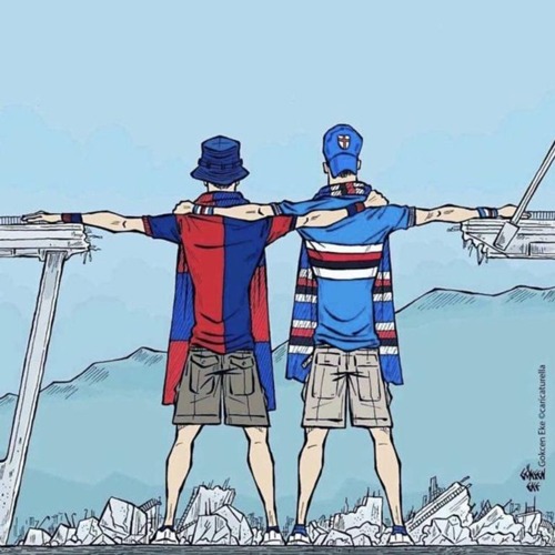 Yeniavaz.com-un “Hürriyet” qəzetinə istinadən verdiyi məlumata görə, İtaliyada yaşayan karikaturaçı rəssam körpünün dağılmasından sonra Genuya şəhərinin “Cenoa” və “Sampdoriya” rəqib futbol klubları tərəfdarlarının çiyin-çiyinə körpünü birləşdirməsinin yer aldığı əsər ərsəyə gətitib.