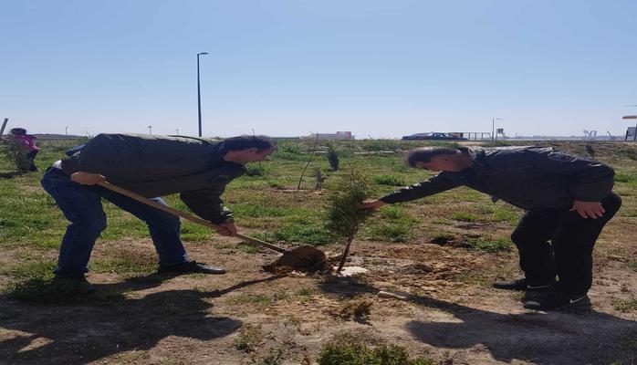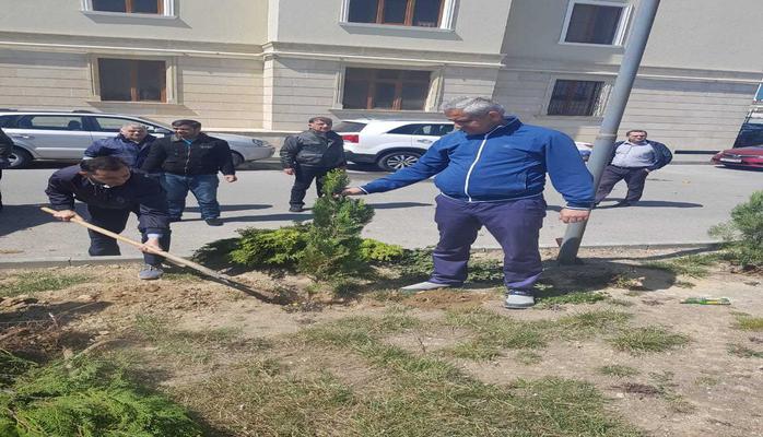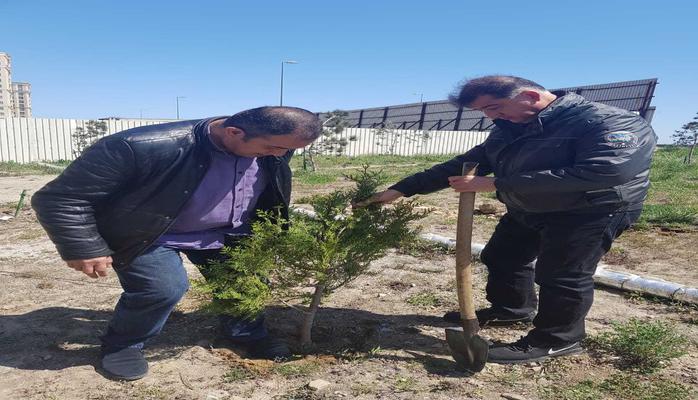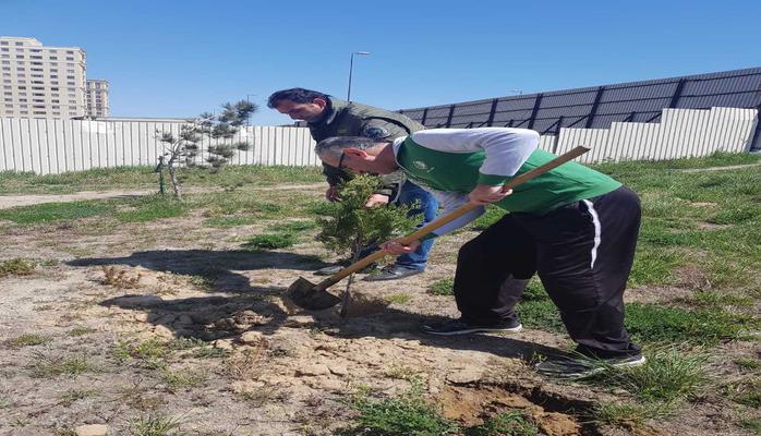 Jurnalistlərin binası qarşısında 300 meyvə və şam ağacı əkilib