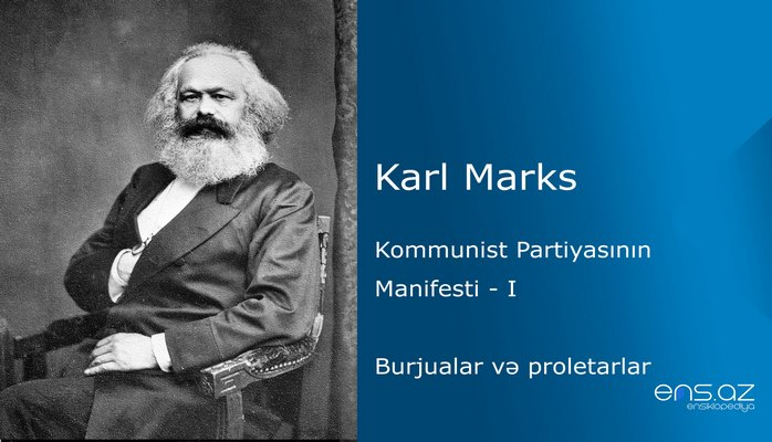 1 Burjuaziya dedikdə, ictimai istehsal vasitələrinin mülkiyyətçisi olub, muzdlu əməkdən istifadə edən müasir kapitalistlər sinfi nəzərdə tutulur. Proletariat dedikdə, öz istehsal vasitələrindən məhrum odub, yaşamaq üçün öz iş qüvvəsini satmağa məçbur olan müasir muzdlu fəhlələr sinfi nəzərdə tutulur. (1888-ci il ingiliscə nəşrinə Engelsin qeydi).
