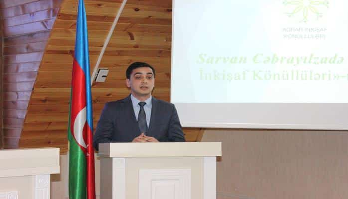 “Aqrar İnkişaf Könüllüləri” ictimai hərəkatının rəhbəri Sarvan Cəbrayılzadə çıxış edərək bir qrup gəncin təşəbbüsü ilə yaradılan hərəkatın məqsədindən, fəaliyyətindən danışıb. Qeyd edib ki, bu günün gəncləri aqrar sektorun inkişafına ictimai dəstək verməklə yanaşı aqrar sahədəki problemlərin həll yollarını tapmaq üçün yeni, innovativ texnologiyaların tətbiqindən məharətlə istifadə edir, cəmiyyətin diqqətini aqrar sahəyə yönəltməyi bacarırlar.