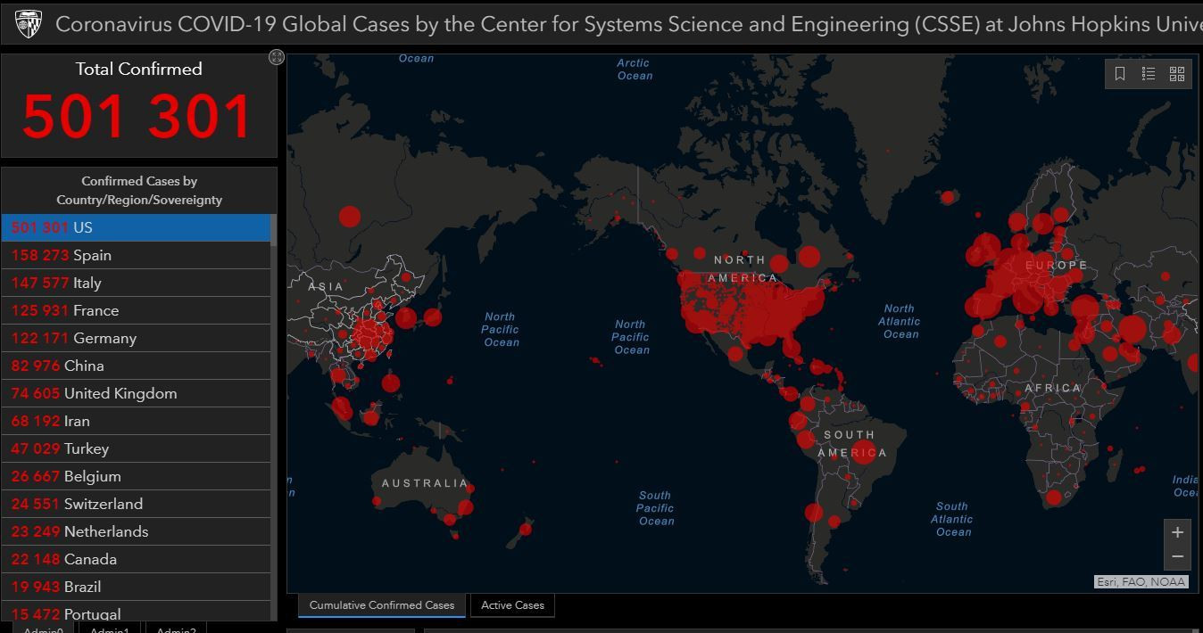 Dünyada yeni növ virusa yoluxma ən çox ABŞ-da qeydə alınıb. Bu ölkədə 501 301 min nəfərə koronavirusa yoluxma diaqnozu qoyulub.