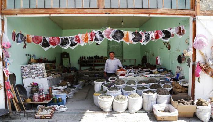"Sovetin vaxtında kolxozda, sovxozda sürücü kimi işləyirdim. İndi isə başqa iş yoxdur. Otları dağdan yığıb quruduruq, sonra belə satırıq", - Hüseyn Abbasov Lahıc bazarında ədviyyat, qurudulmuş çay və ev üsulu mürəbbələri satmaqla ailəsini dolandırır.