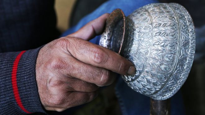 "Lahıcda turist olmasa yaşamaq mümkün deyil. Onlar da Lahıca gəlməsə biz pul qazanmaq üçün başqa yerlərə köçməli olardıq", 39 yaşlı qalayçı- misgər Rza Əliyev bildirir.