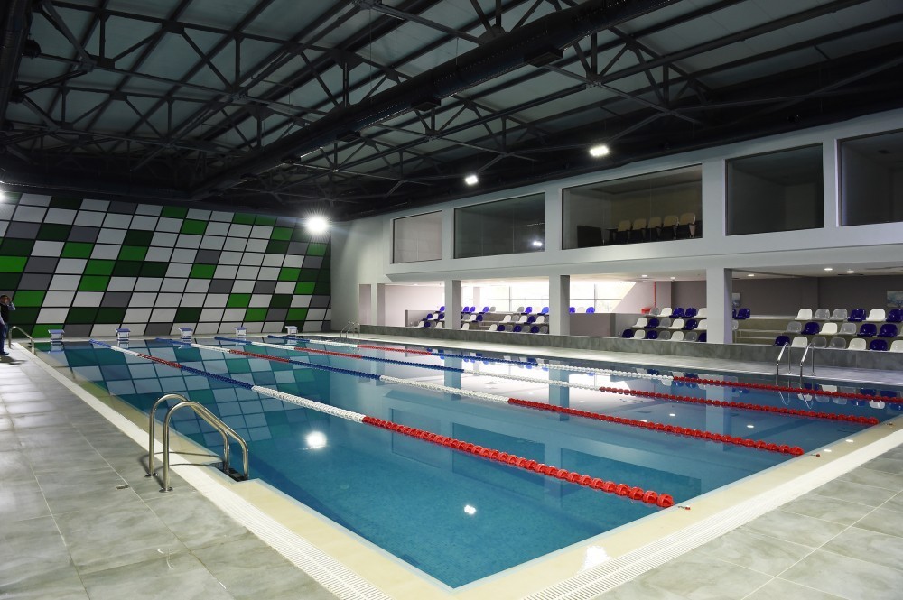 Buradakı üzgüçülük hovuzu ən müasir standartlara cavab verir. Hovuzun uzunluğu 25 metr, eni isə 12 metrdir. Ölkəmizdə yeniyetmə və gənclərin idmanın üzgüçülük növünə də marağı ildən-ilə artır. Bu zalda üzgüçülük yarışlarını 135 nəfər izləyə biləcək. Müasir standartlara cavab verən futbol meydançasında keçiriləcək yarışları tribunalardan 1300-ə qədər tamaşaçı izləyəcək. Burada mini futbol meydançası da idmançıların ixtiyarına verilib. Basketbol və voleybol meydançaları idmansevərlərə dəyərli töhfədir. Kompleks, həmçinin qaz, su-kanalizasiya, elektrik, rabitə xətləri ilə təchiz olunub. Həyətdə geniş abadlıq-quruculuq işləri görülüb, yaşıllıqlar salınıb, istirahət guşələri yaradılıb.