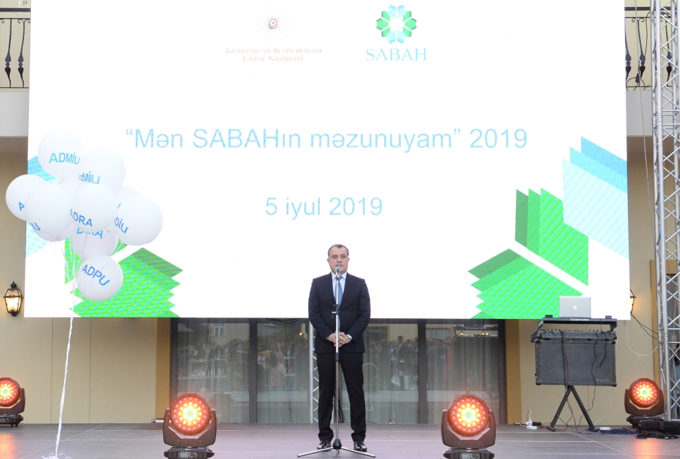 Müasir dünyada elmin, təhsilin mühüm rolundan bəhs edən C.Bayramov ölkəmizdə bu sahənin inkişafına xüsusi önəm verildiyini vurğulayıb. Nazir məzunların doğma Azərbaycanın davamlı inkişafına töhfə verəcəklərinə əminliyini bildirib. Təhsil naziri “SABAH” məzunlarının uğurlu fəaliyyətinə toxunaraq bir daha bütün məzunları təbrik edib və onlara gələcək həyatlarında uğurlar arzu edib.