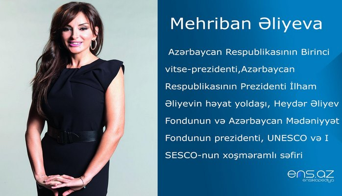 Mehriban Əliyeva (tam adı: Mehriban Arif qızı Əliyeva) — Azərbaycan Respublikasının Birinci vitse-prezidenti; Azərbaycan Respublikasının Prezidenti İlham Əliyevin həyat yoldaşı, Heydər Əliyev Fondunun və Azərbaycan Mədəniyyət Fondunun prezidenti, UNESCO və ISESCO-nun xoşməramlı səfiri.