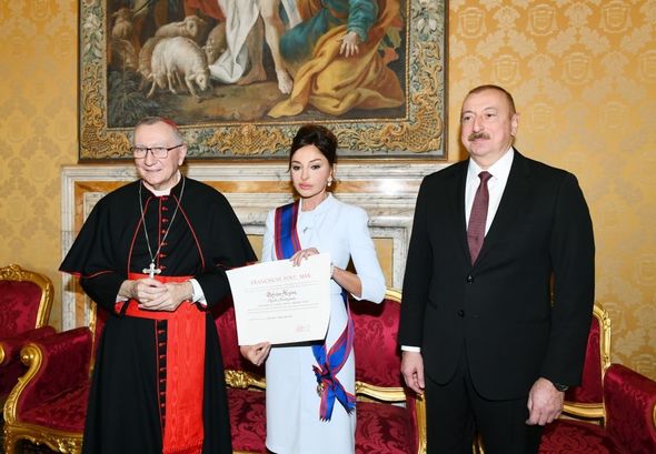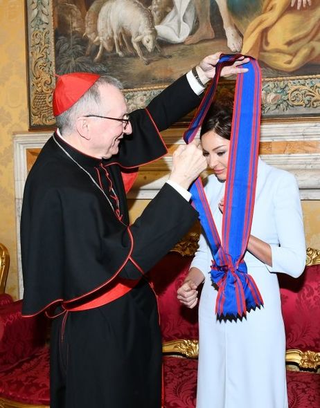 Ordeni Mehriban xanım Əliyevaya Müqəddəs Taxt-Tacın dövlət katibi kardinal Pietro Parolin təqdim edib.