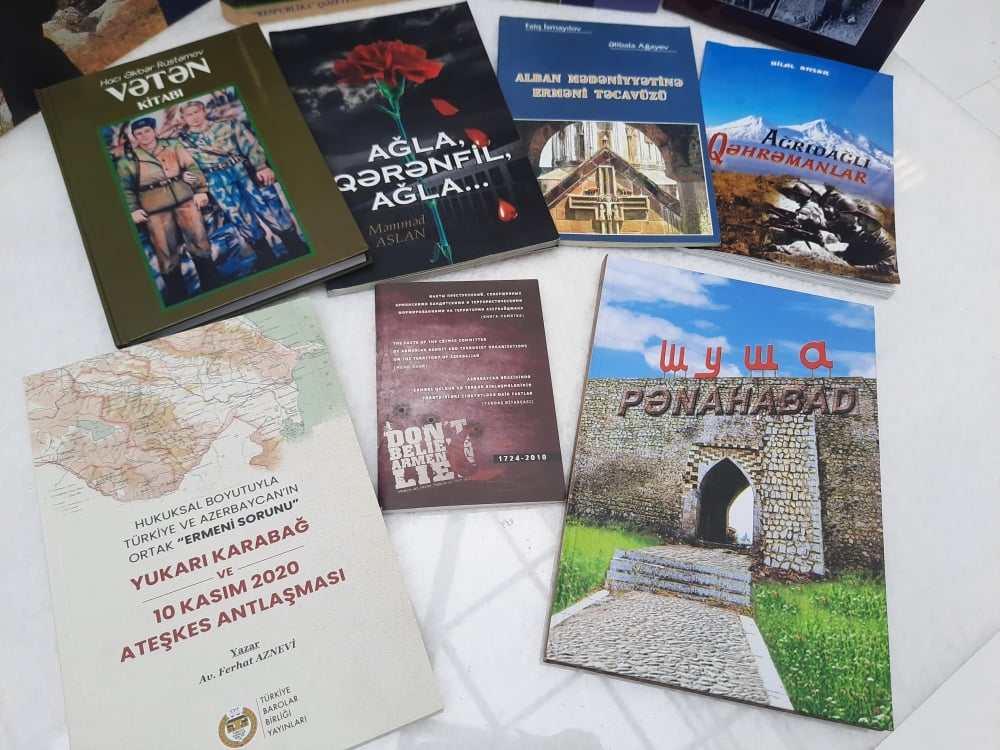 Daxil olan nəşrlərdən “Şuşa-Pənahabad” (Yaqub Mahmudov, Camal Mustafayev), türk dilində olan “Hüquqi müstəvidə Türkiyə və Azərbaycanın ortaq erməni problemi. Qarabağ və 10 noyabr 2020-ci il Atəşkəs Bəyanatı (Av.Fərhat Aznevi)”, “Zəfərə aparan yol” (Misir Mərdanov), “Qarabağ Azərbaycandır! Vətən Müharibəsi 44 gün” (“Respublika” qəzetinin Xüsusi Buraxılışı), Məmməd Aslanın “Ağla, qərənfil, ağla...”, “Alban mədəniyyətinə erməni təcavüzü” (Faiq İsmayılov, Əlibaba Ağayev), “Ağrıdağlı Qəhrəmanlar” (Bilal Ənsər), “Baş daşı əhvalatı” (Salatın Əhmədli)”, “Vətən kitabı” (Hacı Əkbər Rüstəmov), “Şəhidlər və Qazilər” (M.Kamal Pilavoğlu), “Parçalanmış millətin harayı” və digər dəyərli nəşrlər yer alıb.