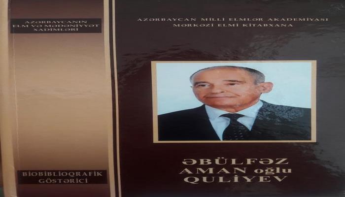 Azərbaycan Milli Elmlər Akademiyası (AMEA) Mərkəzi Elmi Kitabxanası (MEK) tərəfindən “Azərbaycanın görkəmli elm və mədəniyyət xadimləri” seriyasından tanınmış dilçi-türkoloq alim AMEA Naxçıvan Bölməsinin İncəsənət, Dil və Ədəbiyyat İnstitutunun direktoru, Azərbaycan Respublikasının əməkdar müəllimi, AMEA-nın müxbir üzvü Əbülfəz Aman oğlu Quliyevin biobiblioqrafik göstəricisi hazırlanıb. Görkəmli alimin 70 illik yubileyi haqqında AMEA Rəyasət Heyətinin Qərarı ilə çapa tövsiyə olunan kitabın elmi redaktoru AMEA Naxçıvan Bölməsinin sədri, akademik İsmayıl Hacıyev, redaktoru AMEA MEK-in Biblioqrafiya şöbəsinin müdiri, filologiya üzrə fəlsəfə doktoru, dosent Şəhla Tahirqızı, tərtibçiləri alimin qızı, filologiya üzrə fəlsəfə doktoru Aliyə Əbülfəzqızı və MEK-in baş biblioqrafı Mahnur Həsənovadır.