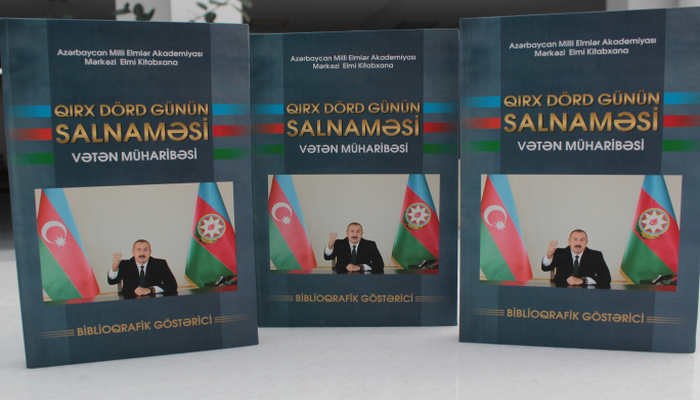 Xalqın yaratdığı intellektual milli sərvəti toplamaq, qorumaq və gələcək nəsillərə ötürmək missiyasını daşıyan AMEA Mərkəzi Elmi Kitabxanası da bu qələbəyə layiqli töhfəsini vermək məqsədi ilə “Qırx dörd günün salnaməsi: Vətən müharibəsi” adlı biblioqrafik göstərici tərtib etməyi özünə borc bildi. Təqdim olunan biblioqrafik göstərici qırx dörd günlük II Qarabağ müharibəsinə həsr edilmiş dövri mətbuat materialları əsasında tərtib olunmuşdur. 2020-ci ilin sentyabrından 2021-ci ilin aprelinədək dərc olunmuş Rus və Azərbaycan dillərində materialları əhatə edən göstərici tarixçilər, tədqiqatçı alimlər və mütəxəssis kitabxanaçılar üçün nəzərdə tutulmuşdur. Göstəricidə materiallar xronologiya üzrə əlifba sırası ilə verilmişdir və istifadəni asanlaşdırmaq məqsədi ilə köməkçi aparat tərtib olunmuşdur. Kitabın ön sözünün müəllifi akademik Ramiz Mehdiyev, redaktoru MEK-in baş direktoru, professor Məmməd Əliyev, ixtisas redaktoru əməkdar mədəniyyət işçisi Xuraman İsmayılova, tərtibçilər Natavan Hacıyeva, Aygün Əliyeva, Əsmər Salalı, Leylibəyim Mirseyidlidir.