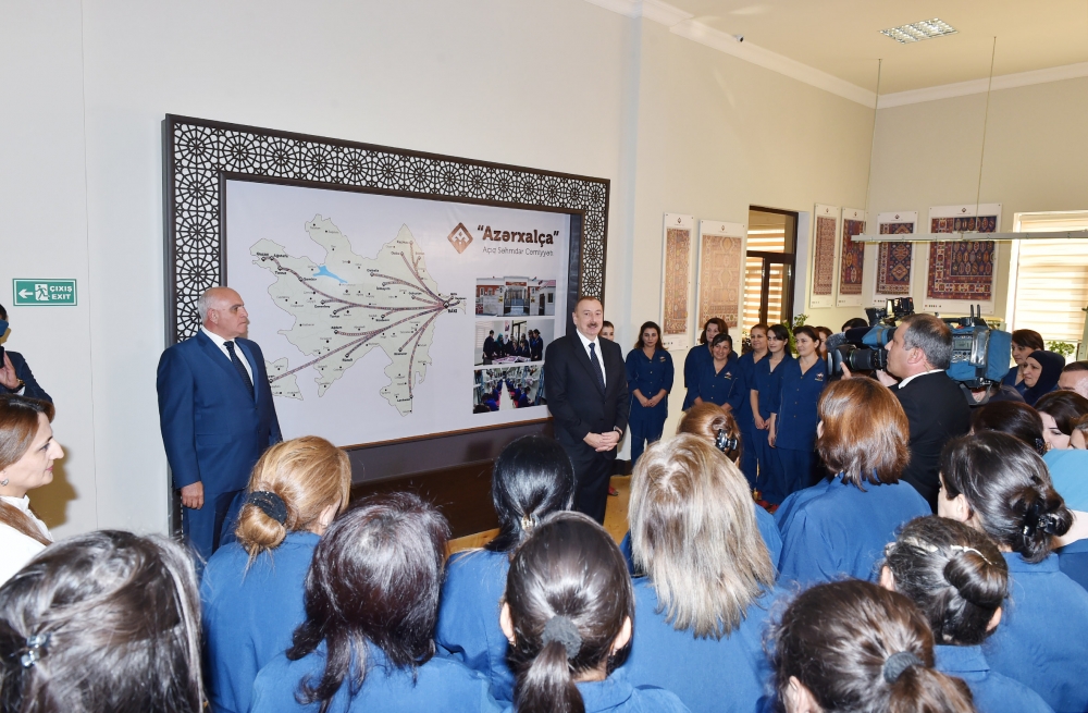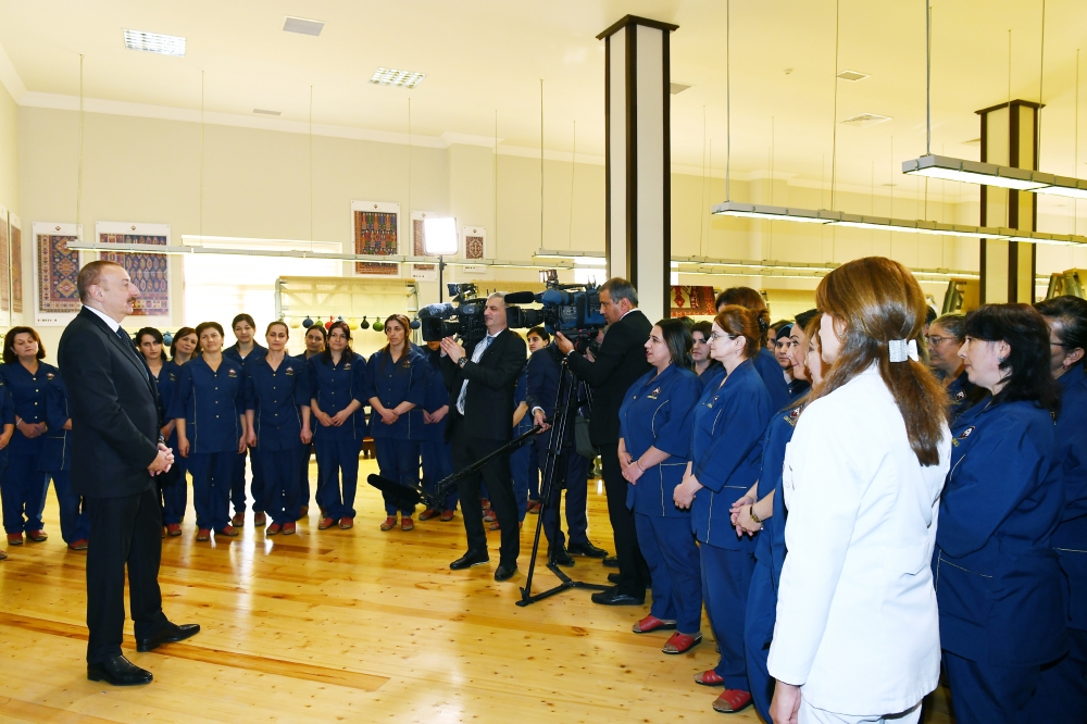 Burada iş şəraiti də, əməkhaqqı da yaxşıdır. Azərbaycanda xalçaçılıq sənətinin bundan sonra da yaşadılması üçün biz çox böyük işlər görürük. Bu məqsədlə “Azərxalça” müəssisəsi yaradılıbdır və mənim göstərişimlə ölkəmizdə 30-dan çox xalça fabriki tikilməlidir. Onlardan 10-u istifadəyə verilib, o cümlədən biri Qəbələ şəhərində. Növbəti illərdə isə 20-dən çox fabrik fəaliyyətə başlayacaq. Bu fabriklərdə minlərlə yeni iş yeri yaradılacaq.