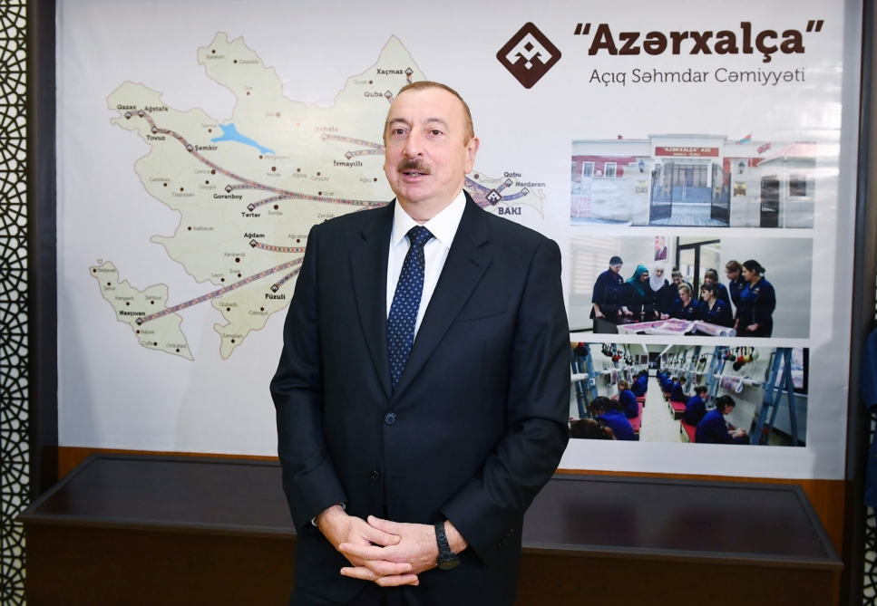 - Mən sizi ürəkdən salamlayıram. Sizi yeni xalça fabrikinin açılışı münasibətilə ürəkdən təbrik edirəm. Bu gözəl müəssisədə indi 50-dən çox iş yeri yaradılıb. Gələcəkdə iş yerlərinin sayı daha da çox olacaq. Əsas məsələ ondadır ki, burada qadınlar üçün iş yerləri yaradılır. Yəni, qadınları işlə təmin etmək üçün xüsusi tədbirlər görülür ki, Azərbaycanda iş yerləri daha da sürətlə açılsın, daha geniş əhalini əhatə etsin.