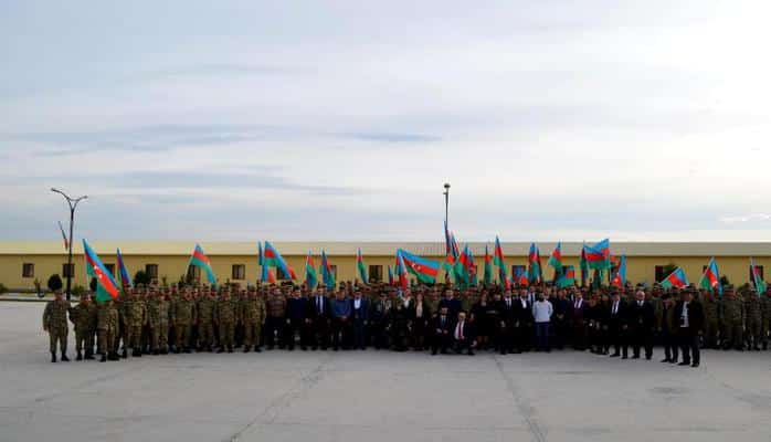 Tədbirdə çıxış edən Kitabxananın Beynəlxalq və ictimaiyyətlə əlaqələr şöbəsinin müdiri Mübariz Göyüşlü hərbiçiləri Azərbaycan Xalq Cümhuriyyətinin və Silahlı Qüvvələrimizin 100 yaşının tamam olması münasibətilə təbrik edib. MEK tərəfindən Azərbaycan və dünya ədəbiyyatına, mədəniyyətinə, tarixinə aid Azərbaycan Respublikasının Prezidenti İlham Əliyevin Sərəncamı ilə çap olunmuş kitabları hərbi hissəyə hədiyyə etdiyini deyib.