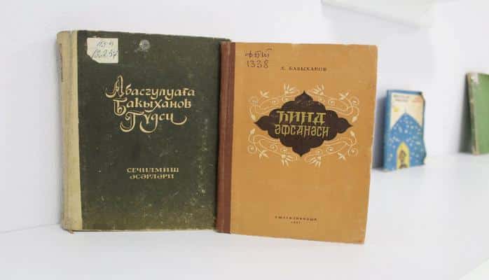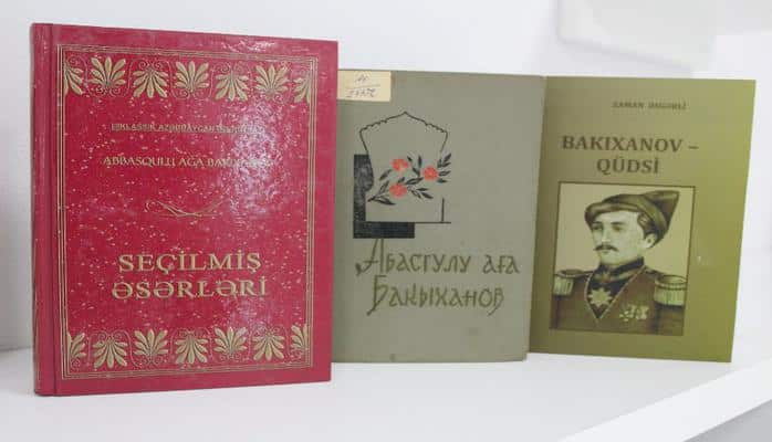 Sərgidə Abbasqulu Ağa Bakıxanovun Azərbaycan və rus dillərində “Seçilmiş əsərlər”i, “Qüdsinin sərgüzəştləri”, “Hind əfsanəsi”, “Bədii əsərlər”, “Əsrarül-mələküt”, “Gülüstani-İrəm” kitabları, eləcə də elmi və ədəbi irsinin digər nümunələri nümayiş olunur.