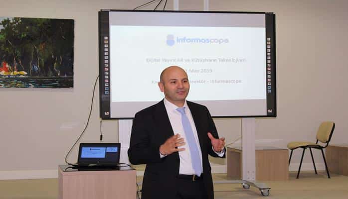 Türkiyənin İnformascope şirkətinin direktoru Kıvanc Çinar “Rəqəmsal yayım və kitabxana texnalogiyaları” mövzusunda geniş təqdimat keçirib və tədbir iştirakçılarının suallarını cavablandırıb.