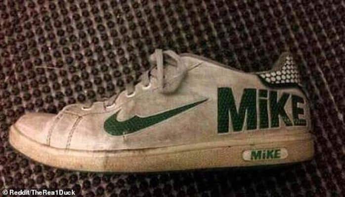 Bu, "Nike" krossovkaları olmalı idi, amma sanki nəsə səhv gedib və "N" hərfinin yerinə "M" hərfi düşüb. Bu şəkli "TheRea1Duck" adlı istifadəçi paylaşıb.