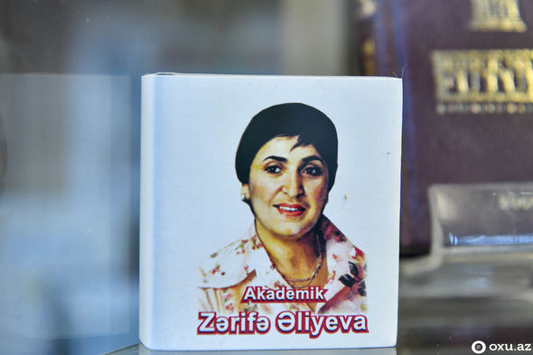 Muzeydə görkəmli siyasi xadim Heydər Əliyevin fəaliyyəti, Zərifə Əliyevanın elmi fəaliyyəti ilə bağlı miniatür kitablardan ibarət guşə var.