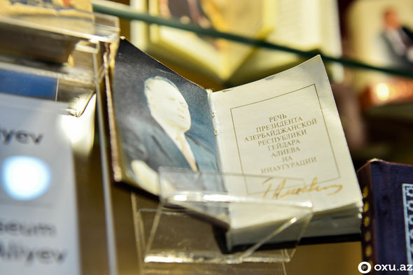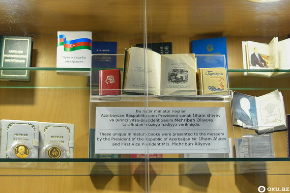 Muzeyimizdə ulu öndərimiz Heydər Əliyevin fəaliyyətini əks etdirən miniatür kitablardan ibarət guşə də var”.