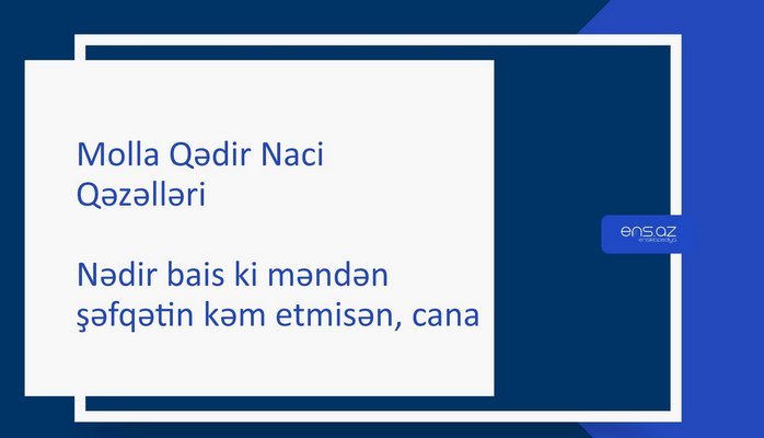 Molla Qədir Naci - Nədir bais ki məndən şəfqətin kəm etmisən, cana