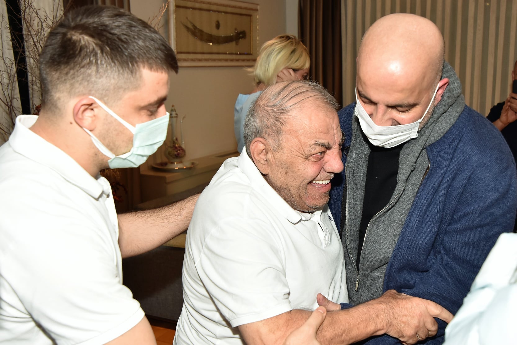 Mənsimov evinə gələrək 1 ildən sonra ailə üzvləri ilə görüşüb.