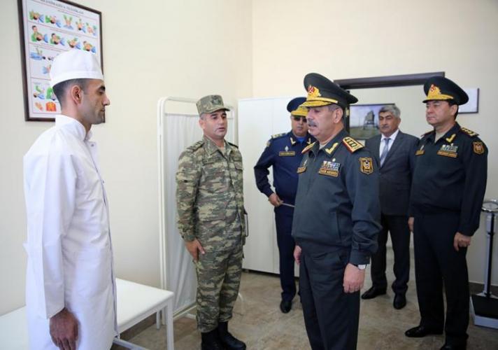 Sonra Müdafiə naziri müvafiq infrastrukturla təmin edilmiş ərazidə yerləşən qərargah, əsgər yataqxanası, yeməkxana, əşya anbarı, tibb məntəqəsi, camaşırxana, qazanxana, xidməti və inzibati otaqlar, eləcə də digər qurğu və avadanlıqlara baxış keçirib.