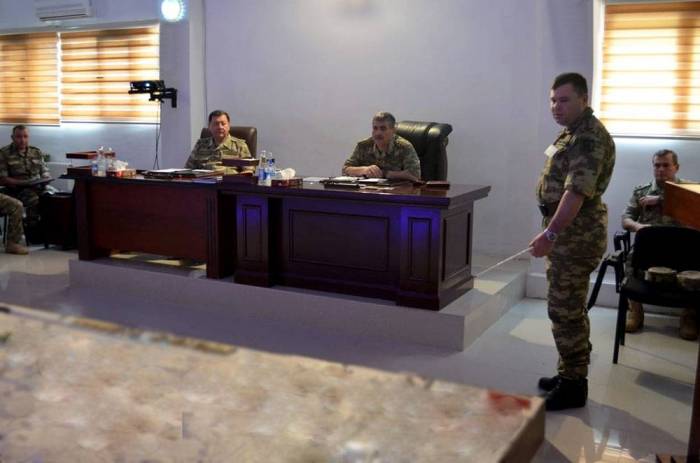 Eyni zamanda təlimlərin planına uyğun olaraq ərazinin kəşfi nəticəsində əldə olunan məlumatlar əsasında təlim iştirakçıları maket üzərində tapşırıqların dəqiqləşdirilməsi, qoşunların qarşılıqlı əlaqədə fəaliyyətlərinin təşkilini həyata keçiriblər.