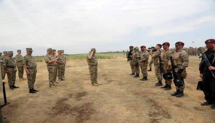 Müdafiə naziri təlim mərkəzində bölmələrin məşqlərini izləyib