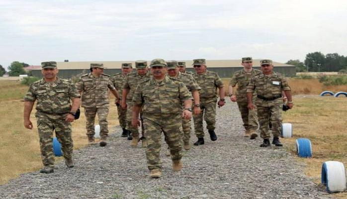 Genişmiqyaslı əməliyyat-taktiki təlimlərinə rəhbərlik edən Müdafiə naziri general-polkovnik Zakir Həsənov və nazirliyin digər rəhbər heyəti təlim məntəqələrinə baş çəkib.