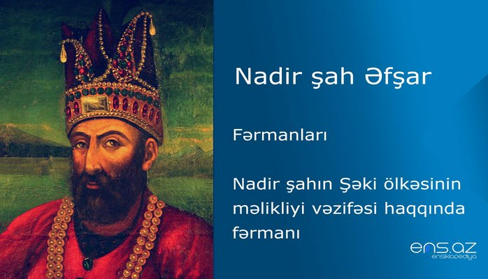 Nadir şah Əfşar - Nadir şahın Şəki ölkəsinin məlikliyi vəzifəsi haqqında fərmanı
