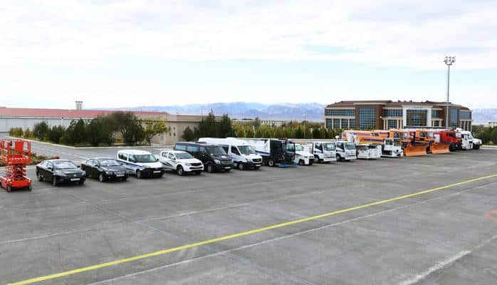Qeyd olunub ki, Naxçıvan Beynəlxalq Hava Limanının nəqliyyat infrastrukturunun möhkəmləndirilməsi istiqamətində həyata keçirilən tədbirlər bu il də davam etdirilib, hava limanına 25 adda 30 yeni texnika və avtomobil alınıb. “Skymark” markalı yanacaqvuran, “Man” markalı yanacaqdaşıyan və yanğınsöndürən, “Mercedes” markalı xüsusi təyinatlı qartəmizləyənlər, “Schmidt” markalı yolsüpürən, “Trepel” markalı yükləyici maşınlar, təyyarə yedəkləri, yüksəldici platforma, “Trepel” markalı təyyarəçəkən, “Sherpa” markalı 4 tonluq baqajçəkmə traktorları, yükqaldıran maşınlar və digər mexanizmlər yüksək texniki göstəricilərə malikdir. “Mercedes Sprinter” markalı 2 mikroavtobus, “Fiat Doblo”, “Nazlifan” və “Mitsubishi” markalı minik avtomobilləri də işçi heyətin rahat hərəkətini təmin edəcəkdir.