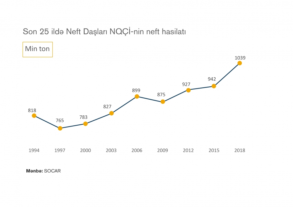 On il bundan əvvəl möhtərəm Prezidentimiz İlham Əliyev Neft Daşlarının 60 illik yubiley mərasimində etdiyi dərin məzmunlu çıxışı zamanı bizim qarşımızda yatağın işlənmə perspektivlərinin, rentabelliyinin və hasilatın artırılması istiqamətində mühüm vəzifələr qoymuşdu. Qürur hissi ilə deyə bilərik ki, dövlətimizin başçısının tapşırıq və tövsiyələri dəniz neftçilərimizin əməli fəaliyyət proqramına çevrilmiş, genişmiqyaslı iş aparılmış, verilən tapşırıqlara əməl olunmuşdur. Son 10 il ərzində yataqda 9 yeni özül tikilib istismara verilmiş, 183 quyu qazılmışdır ki, hazırda bu quyuların cari gündəlik hasilatı 1700 ton təşkil edir. Eyni zamanda, fəaliyyətsiz fonda daxil olan quyularda səmərələşdirici işlər aparılmışdır. Nəticə göz qabağındadır: Neft Daşları yatağı bu gün yeni intibah dövrünü yaşayır. 2018-ci ildə yataq üzrə hasilat 20 faiz artmışdır. İllik neft hasilatı 2010-cu ildə 904 min ton idisə, 2017-ci və 2018-ci illərdə 1 milyon tondan çox olmuşdur. Qaz hasilatında da ciddi artım müşahidə edilir. Ötən il yataqdan 81,2 milyon kubmetr qaz hasil edilmişdir. Neft Daşları yatağında yeni özüllərin tikilməsi və onlardan quyuların qazılması davam etdirilir.
