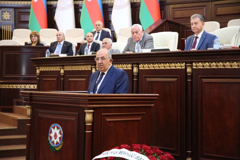 Sonra akademik Yusif Məmmədəliyev adına Neft-Kimya Prosesləri İnstitutunun direktoru, akademik Vaqif Abbasov “Elmin zirvələrinə aparan 90 illik yol” adlı məruzə ilə çıxış edib. Natiq bildirib ki, rəhbərlik etdiyi qurum 1929-cu ildə Neft Tədqiqat İnstitutu kimi fəaliyyətə başlayıb, 30 il sonra isə üç institut birləşdirilərək Neft-Kimya Prosesləri İnstitutu yaradılıb. Üç institutdan birinin Azərbaycan Elmlər Akademiyasının Neft İnstitutu olduğunu deyən alim onun direktorunun dahi Yusif Məmmədəliyev olduğunu əlavə edib: “Dünyada tanınmış alim Y.Məmmədəliyevin institutumuzun şərəfli tarixində xüsusi yeri var. Təsadüfi deyil ki, o, iki dəfə Azərbaycan Elmlər Akademiyasının prezidenti seçilib, Bakı Dövlət Universitetinin rektoru olub. İkinci dünya müharibəsində SSRİ-nin qələbəsində onun elmi nəticələrinin xüsusi rolu olub. Onun 1946-cı ildə aldığı SSRİ dövlət mükafatı da bunun təsdiqidir”.