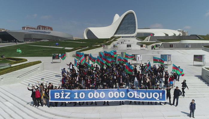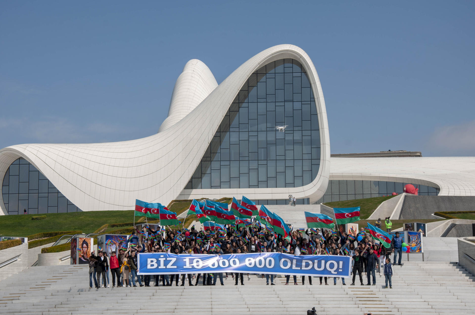 Nərimanov Rayon İcra Hakimiyyətindən Trend-ə verilən məlumata görə, 200-dən artıq rayon gəncinin iştirak etdiyi fleşmob Azərbaycan Respublikasının on milyonuncu vətəndaşının anadan olması münasibətilə təşkil olunub.