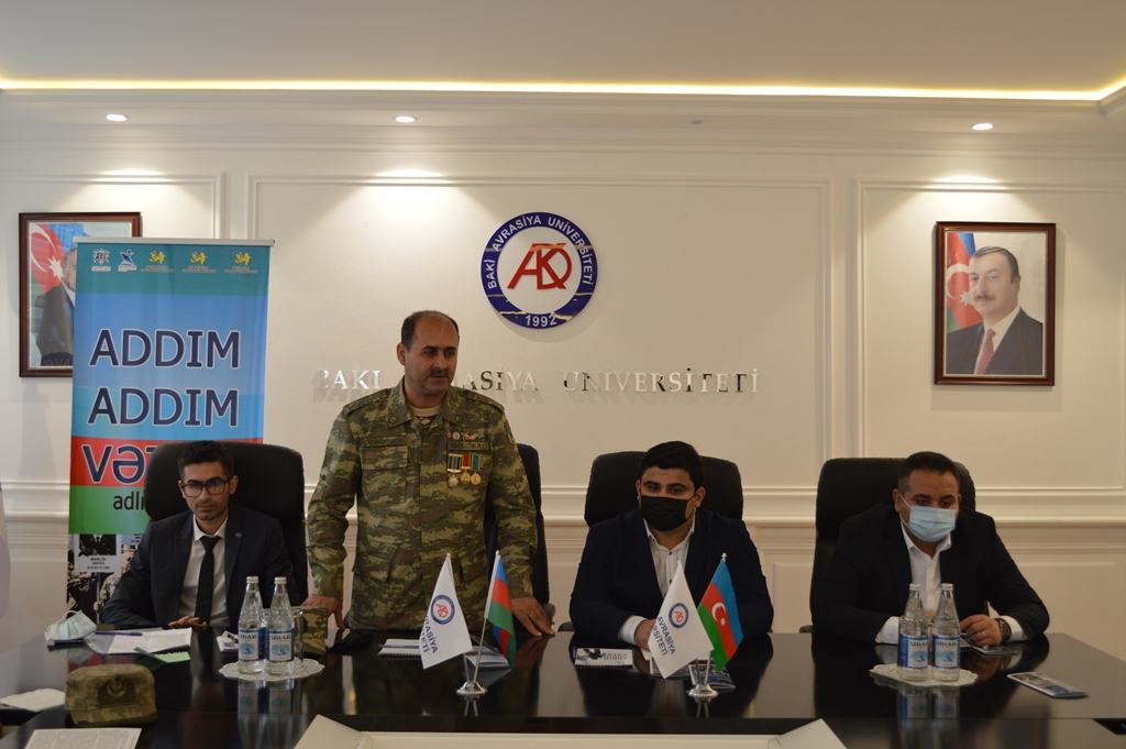 26 noyabr 2021-ci il tarixdə “Bakı Avrasiya” Universitetində Azərbaycan Respublikasının Gənclər Fondunun maliyyə dəstəyi, Nərimanov Rayon Gənclər və İdman İdarəsinin, Binəqədi Rayon Gənclər və İdman İdarəsinin, Nəsimi Rayon Gənclər və İdman İdarəsinin və “Yeni Gələcək” Gənclərin Maarifləndirməsi İctimai Birliyinin birgə təşkilatçılığı ilə ““Addım - addım Vətən” adlı düşərgə” layihəsinin növbəti təlimi keçirilib.