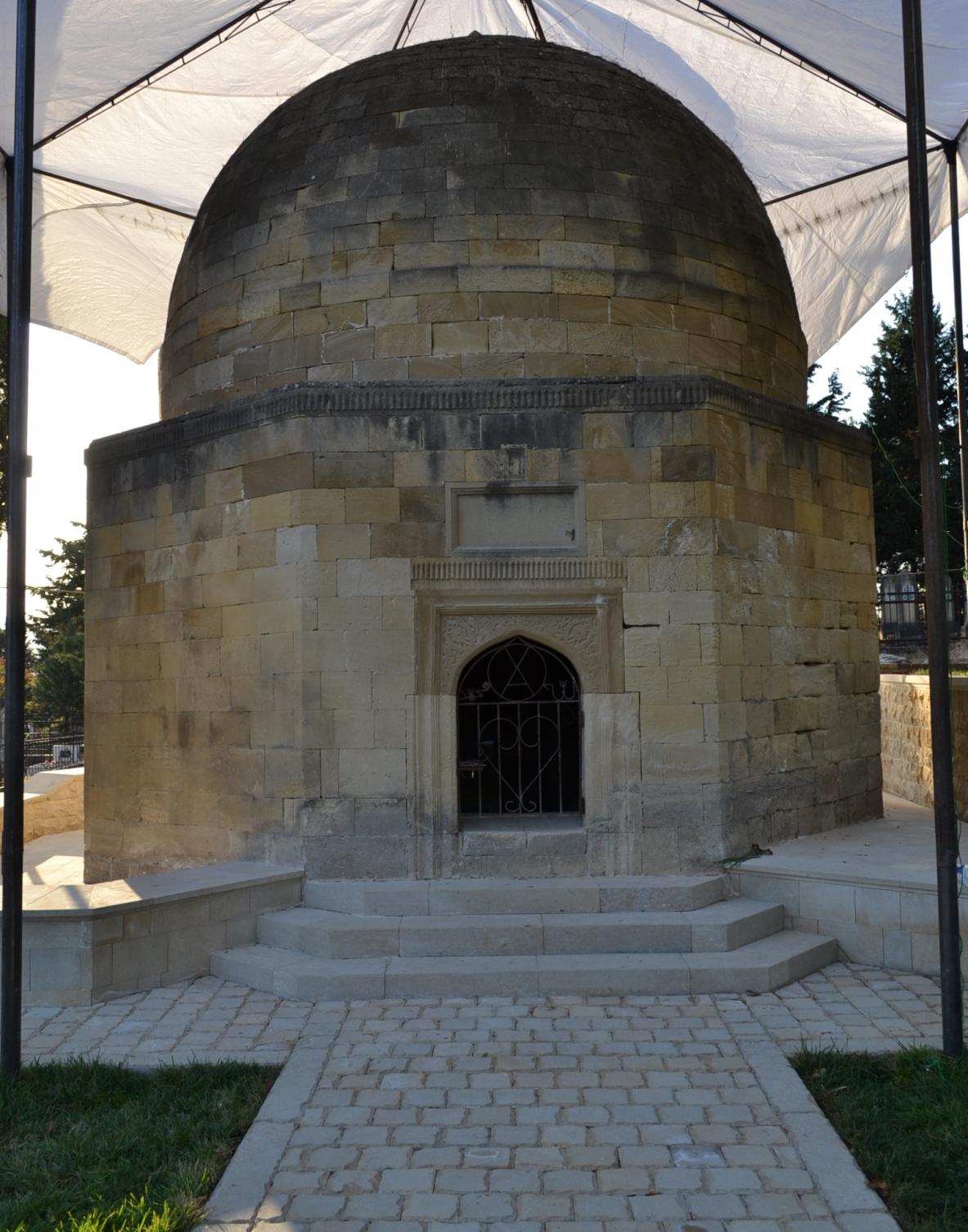 Baş daşı və sənduqələrdən ibarət olan türbənin daxilindəki qəbirlər uzun illər açıq havada qaldığı üçün kitabələri qismən dağılıb. Sonrakı dövrdə bu məzar daşları üzərində səkkizguşəli türbə inşa etdirilib. Türbənin giriş hissəsindəki çatmatağlı qapı yerinin yuxarısında kitabənin yalnız boş yeri qalıb: