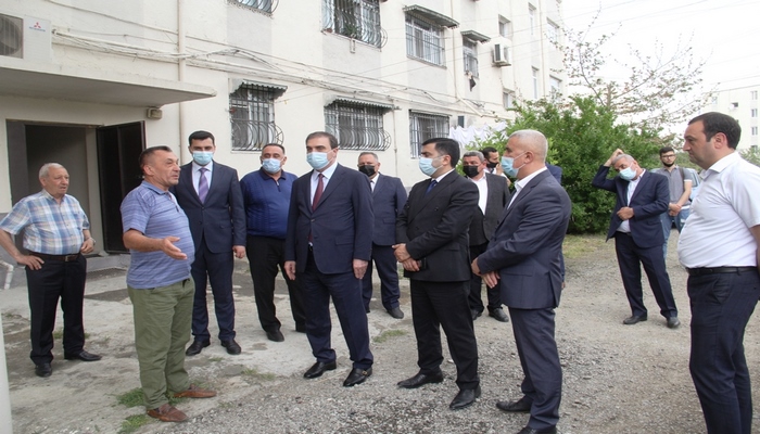 Daha sonra şəhər rəhbəri Gəncənin Gülüstan yaşayış massivindəki çoxmənzilli yaşayış binalarının fasadları və giriş qəfəslərində aparılan təmir işləri ilə tanış olub. O, burada sakinlərlə görüşüb, onlarla söhbət edərək, şikayət və təkliflərini dinləyib.