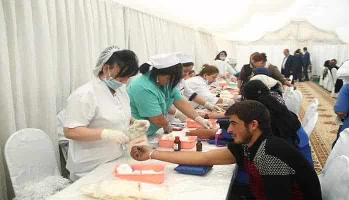 “İmamzadə” ziyarətgahında təşkil olunan qanvermə aksiyasında Gəncə və ətraf rayonlardan 561 nəfər iştirak edib. Aksiya səhər saat 9-da başlanılıb. Mərkəzi Qan Bankının Gəncə filialının 56 nəfərlik tibbi briqadası xüsusi qurulmuş çadırda vətəndaşlara xidmət göstərib. Burada 32 nəfərin eyni vaxtda qanverməsi üçün hər bir şərait yaradılıb, məntəqə zəruri dərman və tibbi vasitələrlə təmin edilib. Aksiyada iştirak emək istəyən şəxslərin əvvəl arterial təziqi və qanında olan hemoqlobinin miqdarı yoxlanılıb. Sağlamlığında problem olmayan və 18 yaşıdan yuxarı şəxslər qan verə biliblər.