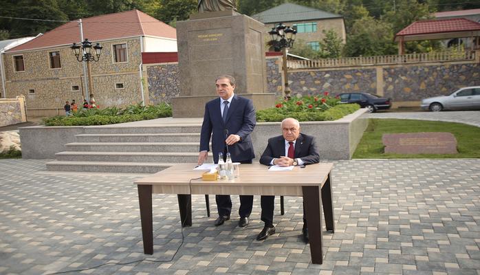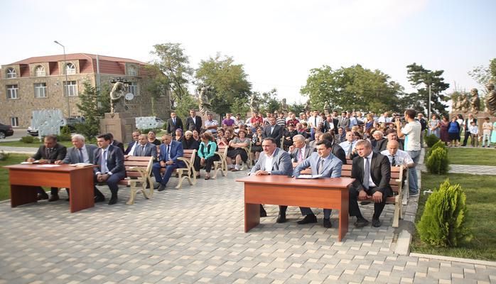 Gəncə Şəhər İcra Hakimiyyətinin başçısı Niyazi Bayramov və Prezident Administrasiyasının Ərazi-Təşkilat Məsələləri Şöbəsinin sektor müdiri Vəfadar Bağırov Hacıkənd qəsəbəsinin sakinlərinin problemlərini dinləyiblər.