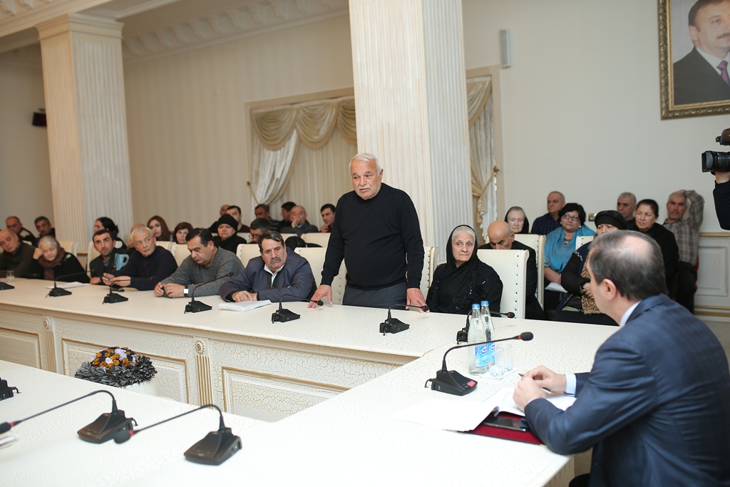 Şəhid ailələri və Qarabağ əlillərinin müraciətləri dinlənilib. İşlə təminat, sanatoriyalara göndərişlərin verilməsi, müailəcəyə ehtiyyacı olanların həkim nəzarətinə götürülməsi, qəzalı evlərin təmiri kimi məsələlər səslənən müraciətlərin əsasını təşkil edib. Görüşdə su, qaz və elektrik enerjisi ilə təminatla bağlı da şikayətlər səsləndirilib.