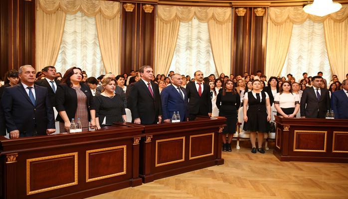 Konfrans Azərbaycan Respublikasının Dövlət Himninin səsləndirilməsi ilə başlayıb. Daha sonra 2018-2019-cu tədris ilinin pedaqoji fəaliyyətini əks etdirən videoçarx nümayiş olunub.