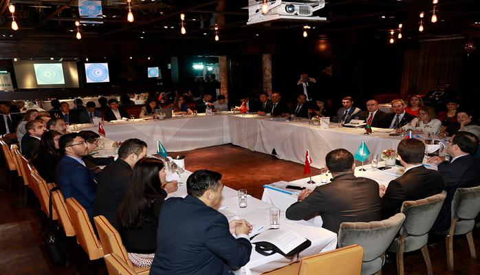 “Qafqazinfo”nun məlumatına görə, proqram çərçivəsində Türkdilli Dövlətlərin Əməkdaşlıq Şurasına (TDƏŞ) üzv ölkələrin diaspor qurumlarının təqdimatı olub. TDƏŞ Baş katibinin müavini Qismət Gözəlov, Diasporla İş üzrə Dövlət Komitəsi sədrinin birinci müavini Valeh Hacıyev, Türkiyənin Nyu-Yorkdakı baş konsulu Alpər Aktaş, Qazaxıstanın Nyu-Yorkdakı baş konsulu Zanibek Abdraşov, Qırğızıstan Dövlət Miqrasiya Xidmətinin sədri Bolotbek İbrahimsanov və digər türkdilli dövlətlərin nümayəndələri çıxış edərək, yürüdülən diaspor siyasəti, bütün dünyada türkdilli diasporların bir araya gətirilməsi və koordinasiyanın gücləndirilməsinin əhəmiyyətindən danışıblar. Hazırda dünyada 20 milyondan çox türkdilli diasporun mövcud olduğu, onların xüsusilə ABŞ kimi böyük lobbiçilik ölkəsində daha iri layihələr həyata keçirmək imkanlarına malik olduqları vurğulanıb.