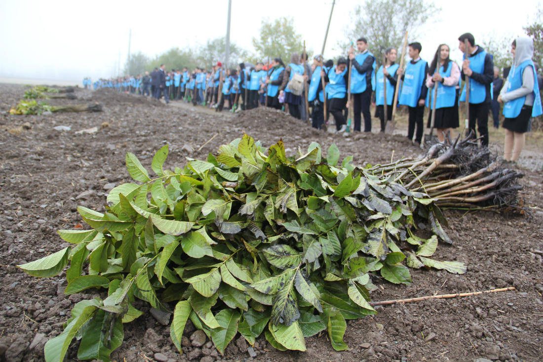 Trend-in məlumatına görə, ağacəkmə aksiyaları zamanı Oğuz rayonunda ayrılan 2 ha ərazidə 312 ədəd qoz ağacı əkilib. Salınan meyvə bağları sözügedən rayonlarda yaşayan aztəminatlı ailələr arasında bölünərək, onların təmənnasız istifadəsinə verilib. Aztəminatlı ailələr bu meyvə bağlarına qulluq edib onlardan məhsul alaraq gəlir əldə etmək və maddi rifahlarını yaxşılaşdırmaq imkanı qazanacaqlar.
