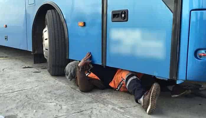 İstanbul “Yenikapı”da ölkə xaricinə qaçaq yollarla getmək istəyən əcnəbi əsilli bir şəxs tur avtobusunun təkər hissəsindəki boşluqda gizlənib.