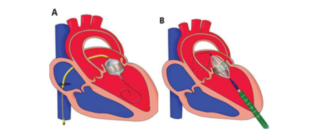 Ü.Rəhimov bildirib ki, qulaqcıqlarla mədəciklər arasındakı qapaqlar ulaşılması daha mürəkkəb olan qapaqlar olduğu üçün bu cür müdaxilələr bu qapaqlarda daha çətindir: “Son illərdə dünyada bu qapaqlara da əməliyyatsız yolla bu qapaqların dəyişməsi əməliyyatı başlayıb. Əməliyyatın mürəkkəb olma səbəbi odur ki, bu qapaqlara bir başa yetişmək mümkün deyil. Ya ayaqdakı venadan girilib qulaqcıqlarası çəpərdən açılan deşik vasitəsiylə (şəkil A) da sol mədəcik zirvəsi kiçik cərrahi yolla deşilərək sol mədəciyə oradan da sol qulaqcığa keçilərək (şəkil B) icra edilir. Daha mürəkkəb olduğu üçün istifadəsi dünyada daha yeni vüsət alır.