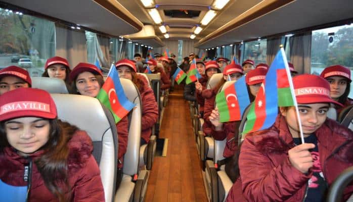 Sonra musiqi sədaları altında məktəblilər onlar üçün ayrılan xüsusi avtobusla Qəbələyə yola salınıblar.