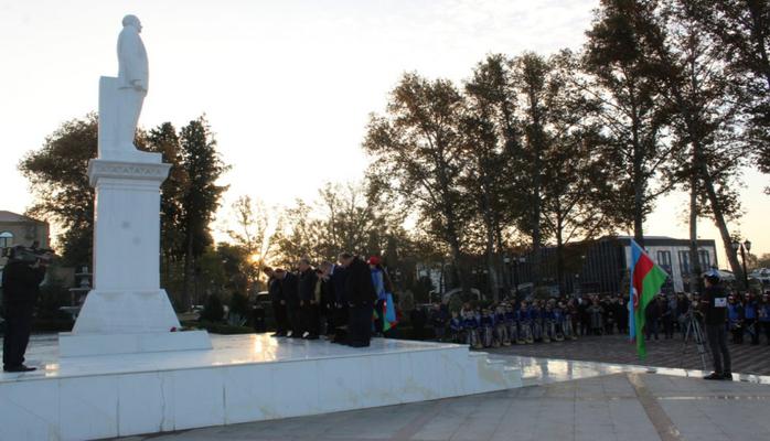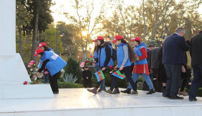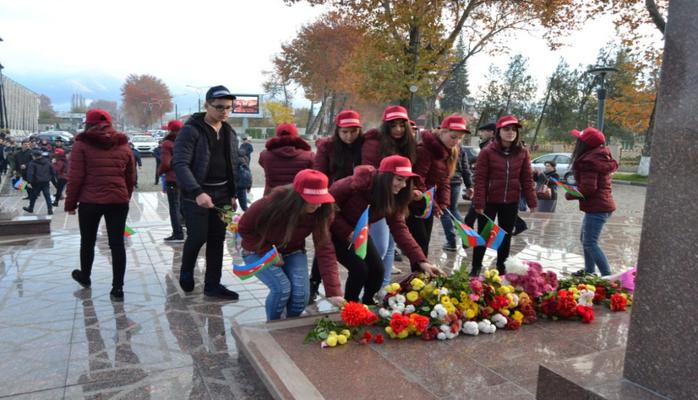Məktəblilər əvvəlcə Şamaxının mərkəzində ümummilli lider Heydər Əliyevin abidəsi önünə çiçəklər düzüblər.