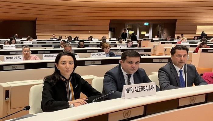 Azərbaycan Respublikasının İnsan Hüquqları üzrə Müvəkkili (Ombudsman) Səbinə Əliyevanın rəhbərlik etdiyi nümayəndə heyəti Milli İnsan Hüquqları Təsisatlarının Qlobal Alyansının (GANHRI) Cenevrə şəhərində keçirilən illik iclası çərçivəsində “Biznes və insan hüquqları: Milli insan hüquqları təsisatlarının rolu və təcrübələri” mövzusunda tematik sessiyada iştirak edib.